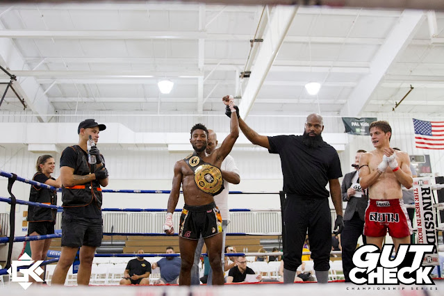 A solid, energized crowd witnessed Jhalani Battle-Williams (23-9) win the 145-pound Gut Check Full Rule Muay Thai Title. He defeated Serpico Arriaga in a five-round majority decision.